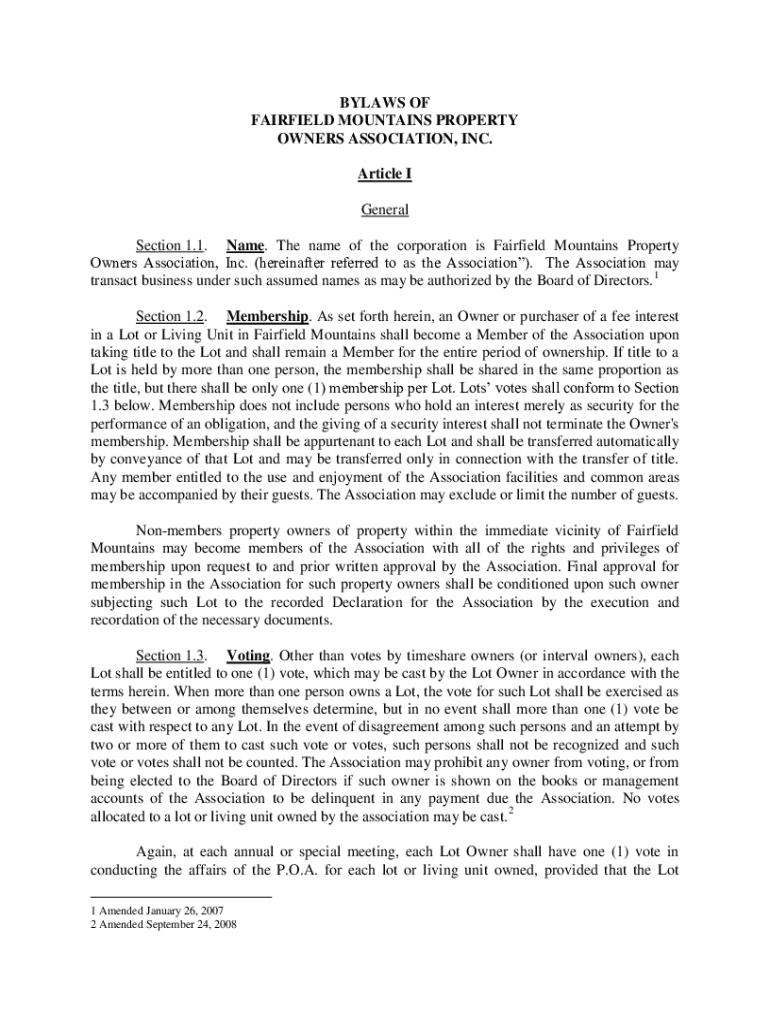 Get the free BYLAWS OF FAIRFIELD MOUNTAINS PROPERTY OWNERS ...
