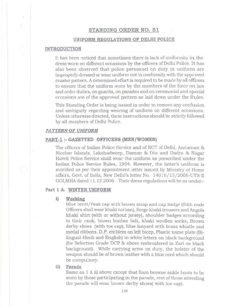 ZyxwvutsrqponmlkjihgfedcbaZYXWVUTSRQPONMLKJIHGFEDCBASTANDING ORDER NO. 51 UNIFORM REGULAR.TONS OF DELHI POLICE INTRODUCTION It has been noticed that sometimes there is lack of uniformity in the dress