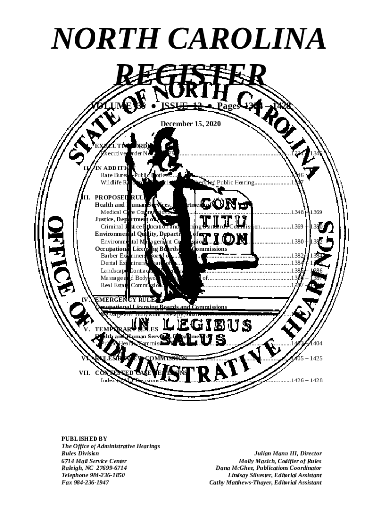 Template NORTH CAROLINA REGISTER - NC instructions