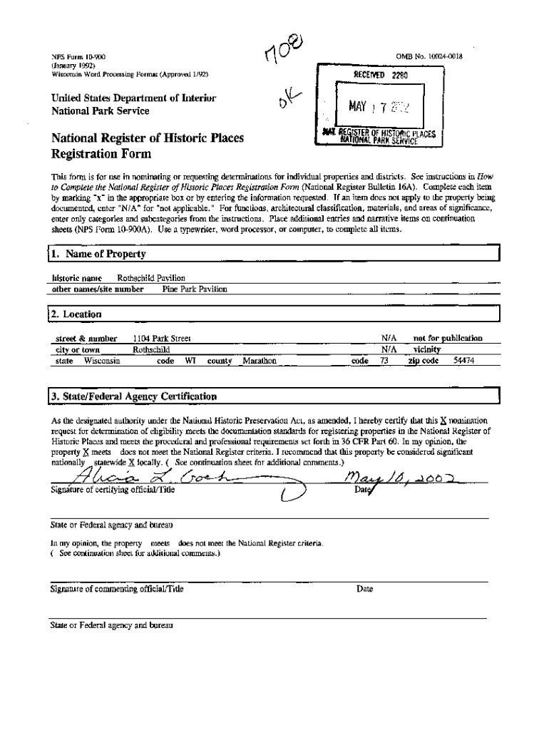 Get the free National Register of Historic Places Registration Form MAY i T m