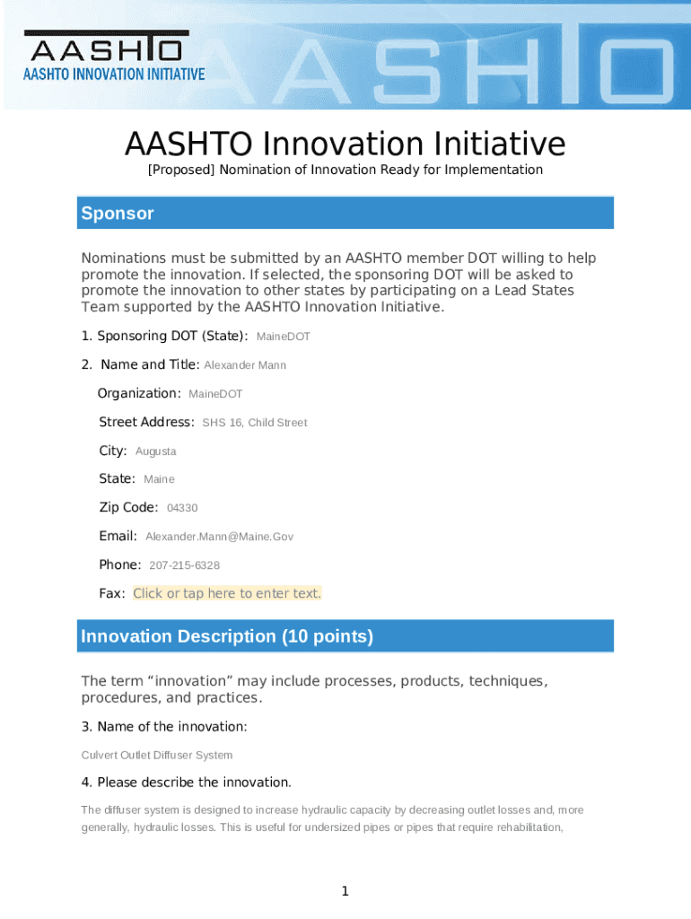 How to fill out Nomination - AASHTO - AASHTO Innovation Initiative - web transportation