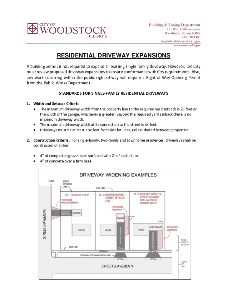 Building & Zoning Department 121 West Calhoun Street Woodstock, Illinois 60098 815.338.4305 baddest Woodstock.govern. Woodstock.nonresidential DRIVEWAY EXPANSIONS A building permit is not required