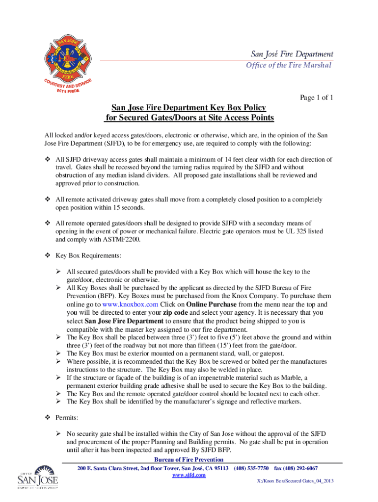 Get the free San Jose Fire Department Key Box Policy for Secured Gates/Doors ...