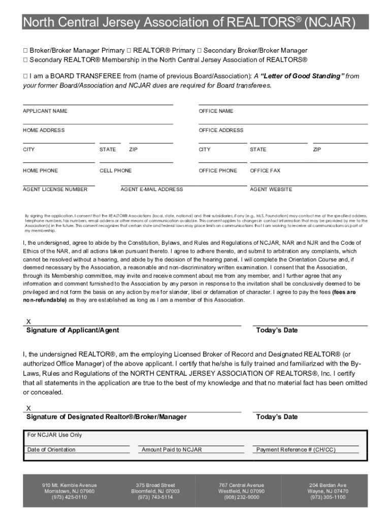 Get the free New Membership Application Instructions - NCJAR