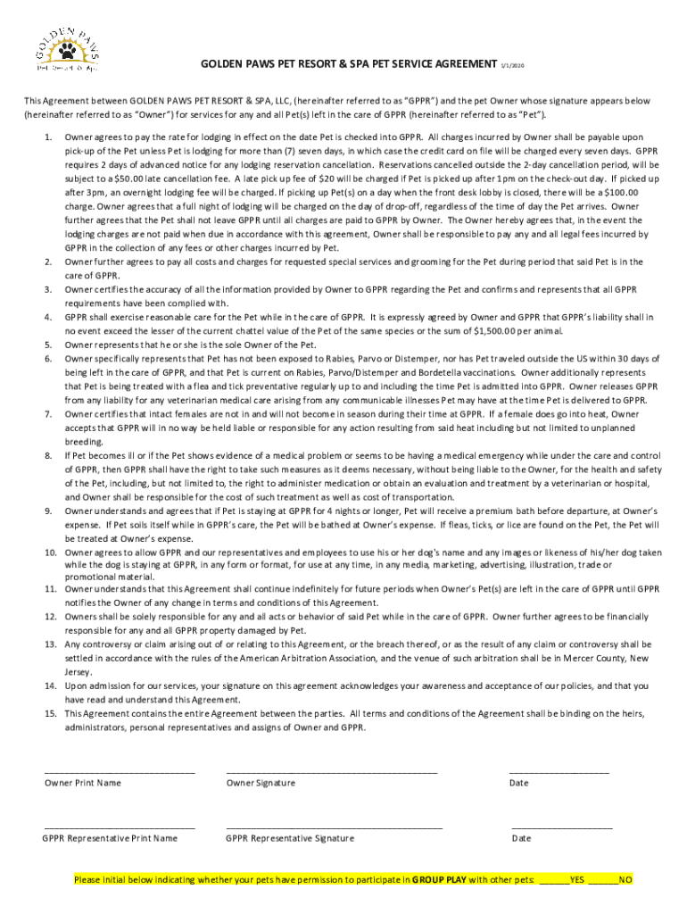 Get the free 01Pet-Service-Agreement-2020-GPPR.pdf - Golden Paws ...