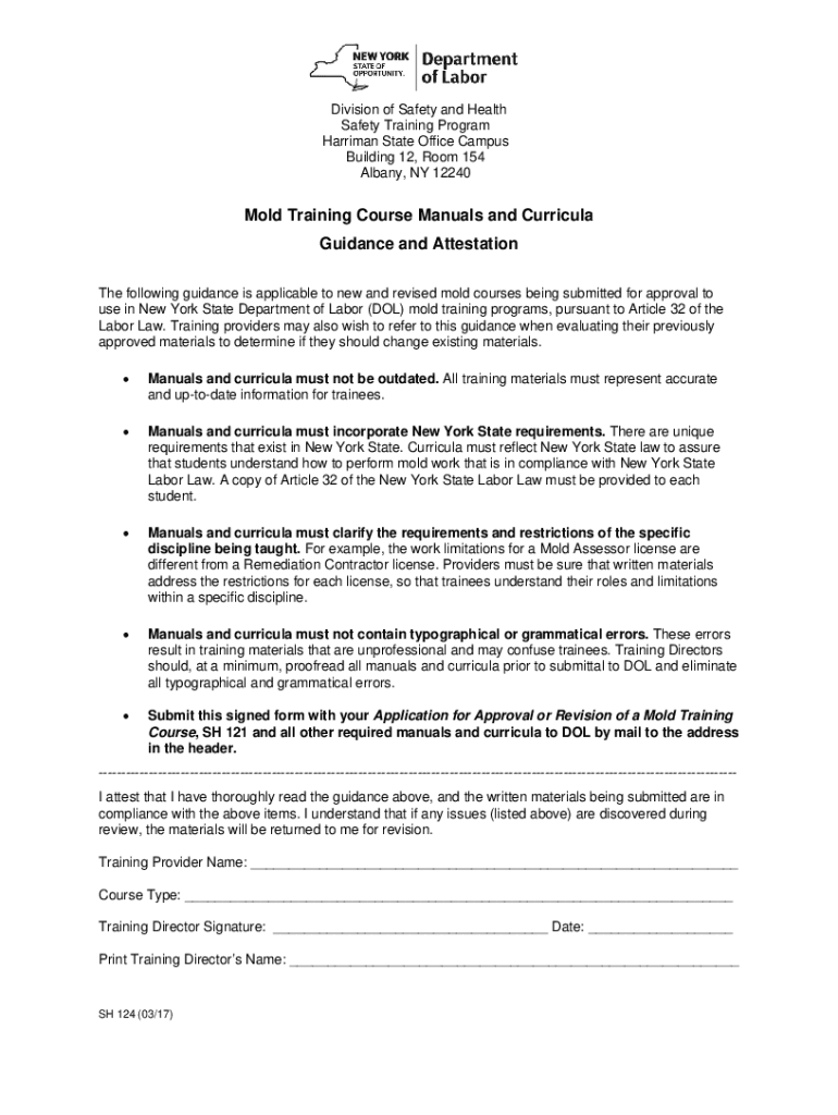 Division of Safety and Health Safety Training Program Harriman State Office Campus Building 12, Room 154 Albany, NY 12240Mold Training Course Manuals and Curricula Guidance and Attestation The following