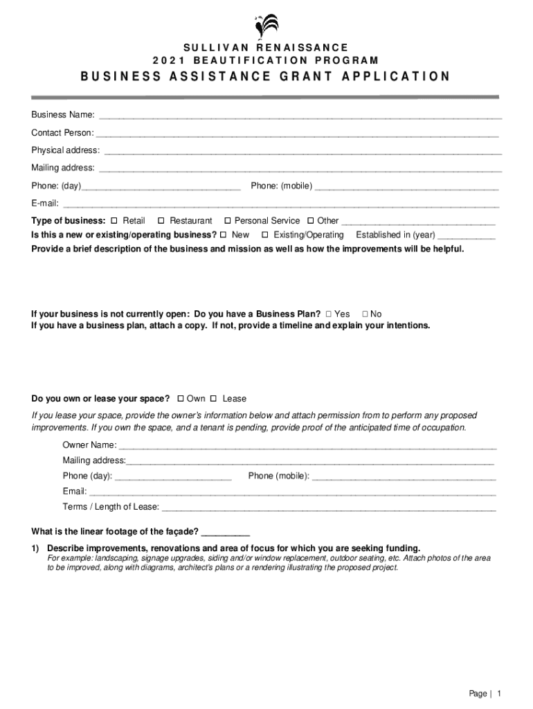 SULLIVAN RENAISSANCE 2021 BEAUTIFICATION PROGRAMBUSINESS ASSISTANCE GRANT INFORMATION Sullivan Renaissance is a beautification and community development initiative of the Gerry Foundation. We believe