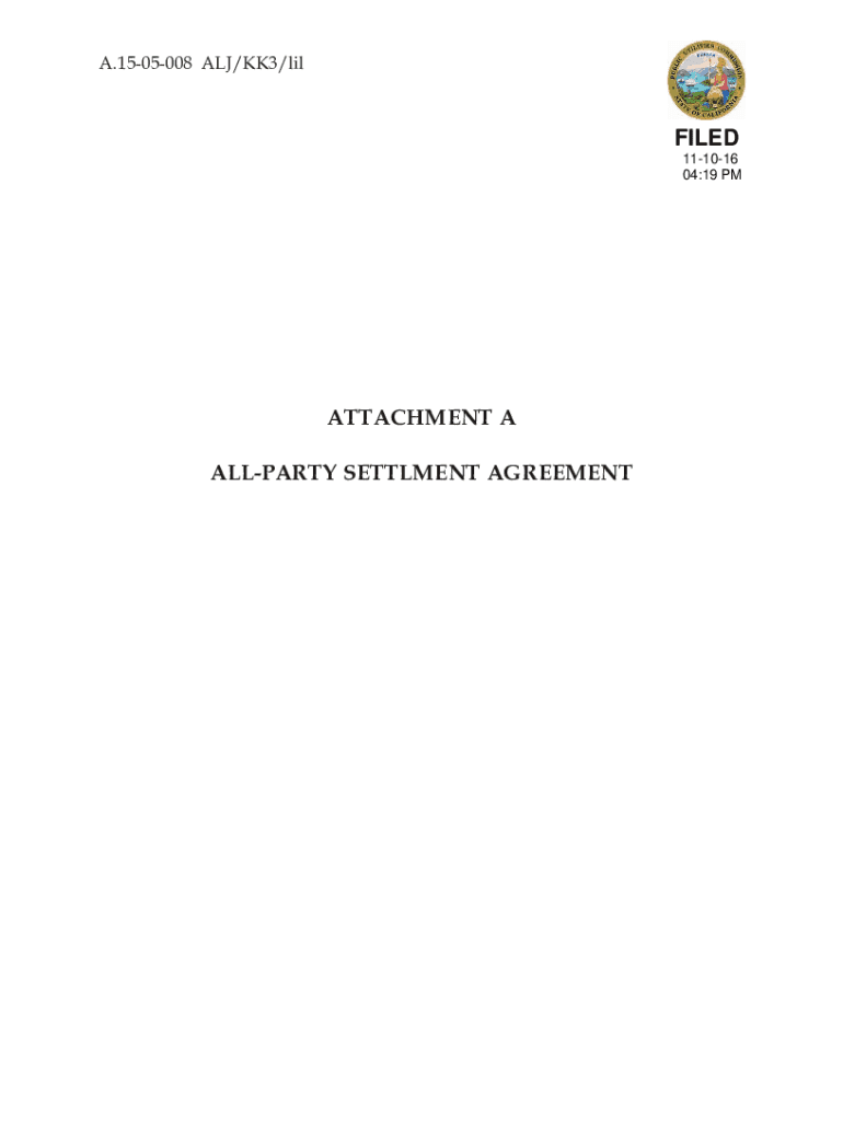 Get the free ATTACHMENT A ALL-PARTY SETTLMENT AGREEMENT FILED - docs cpuc ca