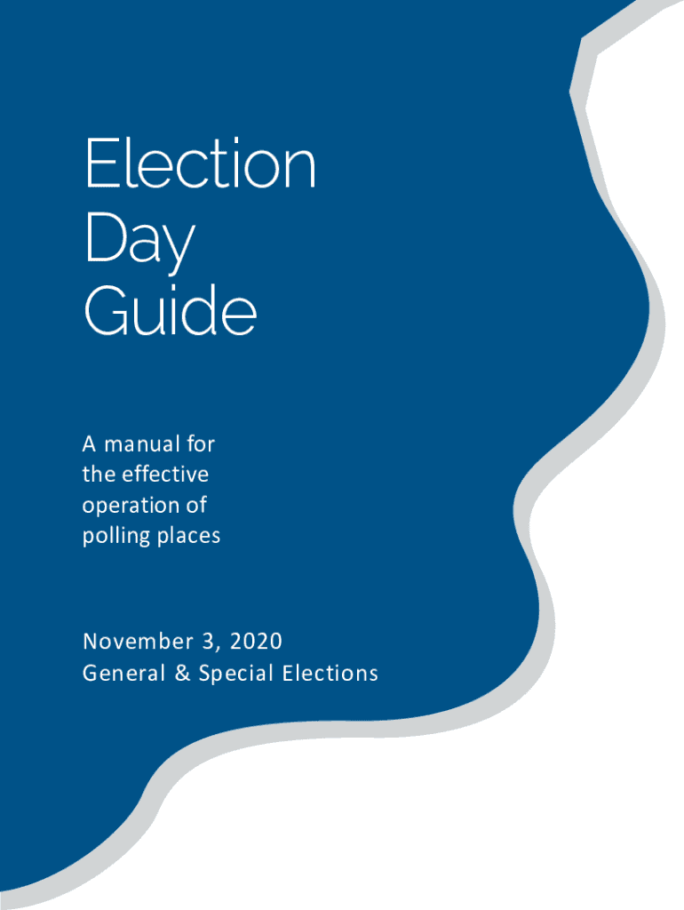 Election Day Guide A manual for the effective operation of polling places November 3, 2020, General & Special ElectionsTable of Contents 4Basic Information Reelection Checklists Election Worker Basics5