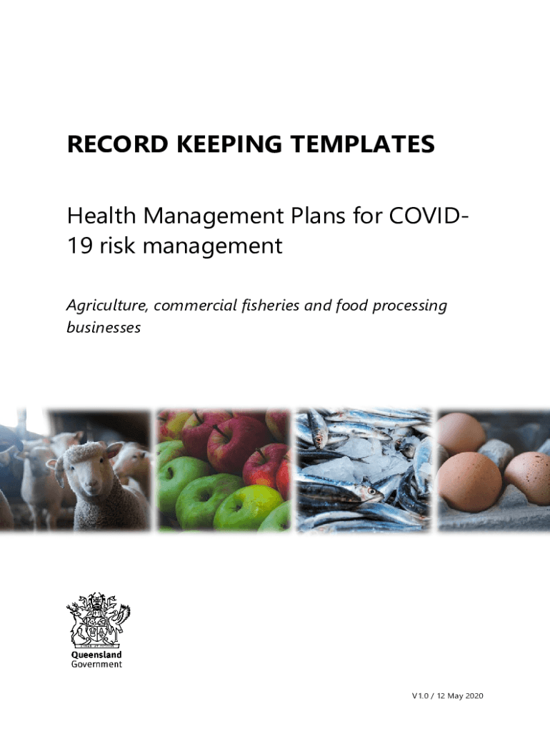 RECORD KEEPING TEMPLATES Health Management Plans for COVID-19 risk management Agriculture, commercial fisheries and food processing businessesV1.0 / 12 May 2020Purpose These templates have been developed