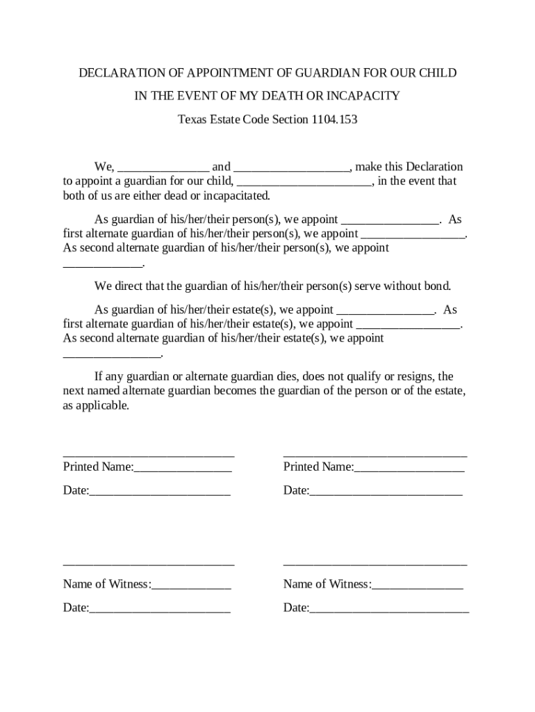 What is Texas Estate Code Section 1104 - The Garrett Law Firm Form?