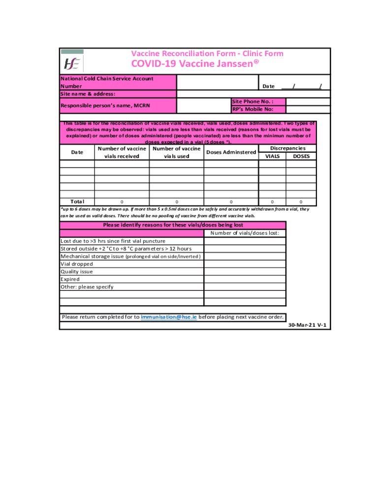 Get the free Janssen-Vaccine Reconciliation Form -V1.xlsx