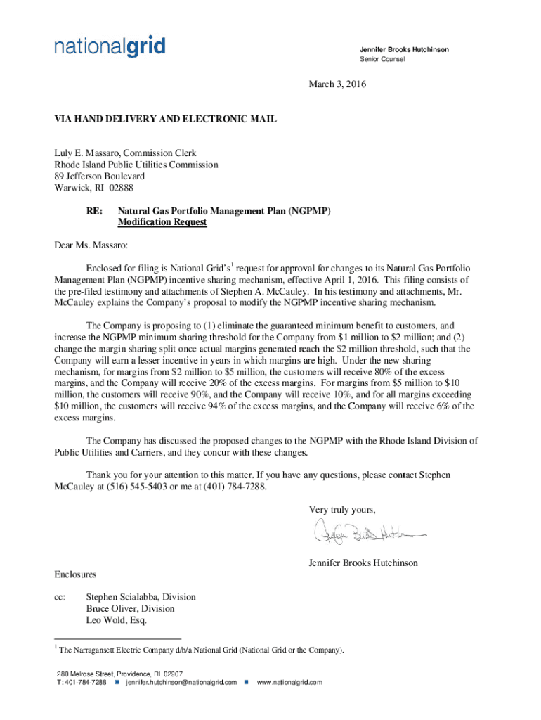 Get the free Request for approval for changes to the NGPMP incentive sharing ...