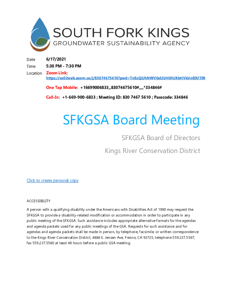 Get the free Board of Directors of the North Fork Kings Groundwater ...