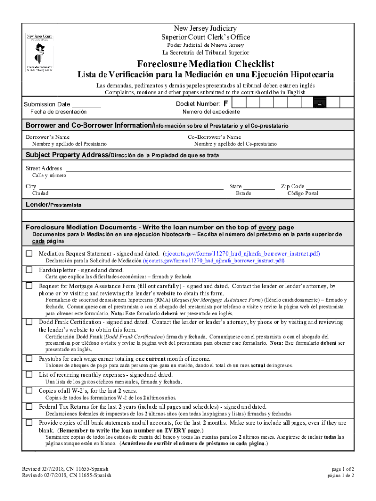 La Secretary Del Tribunal SuperiorForeclosure Mediation ChecklistLista de Verificacin para la Median en