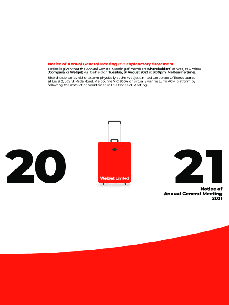 Notice of Annual General Meeting and Explanatory Statement Notice is given that the Annual General Meeting of members (Shareholders) of Web jet Limited (Company or Web jet) will be held on Tuesday,