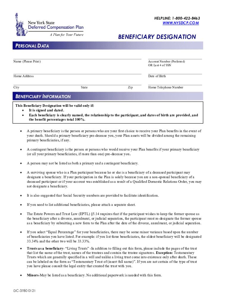 Get the free Beneficiary Designation Form - nysdcp.com