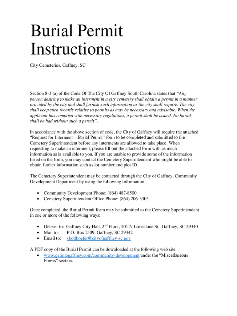 Get the free Burial Permit Instructions - City of Gaffney, SC