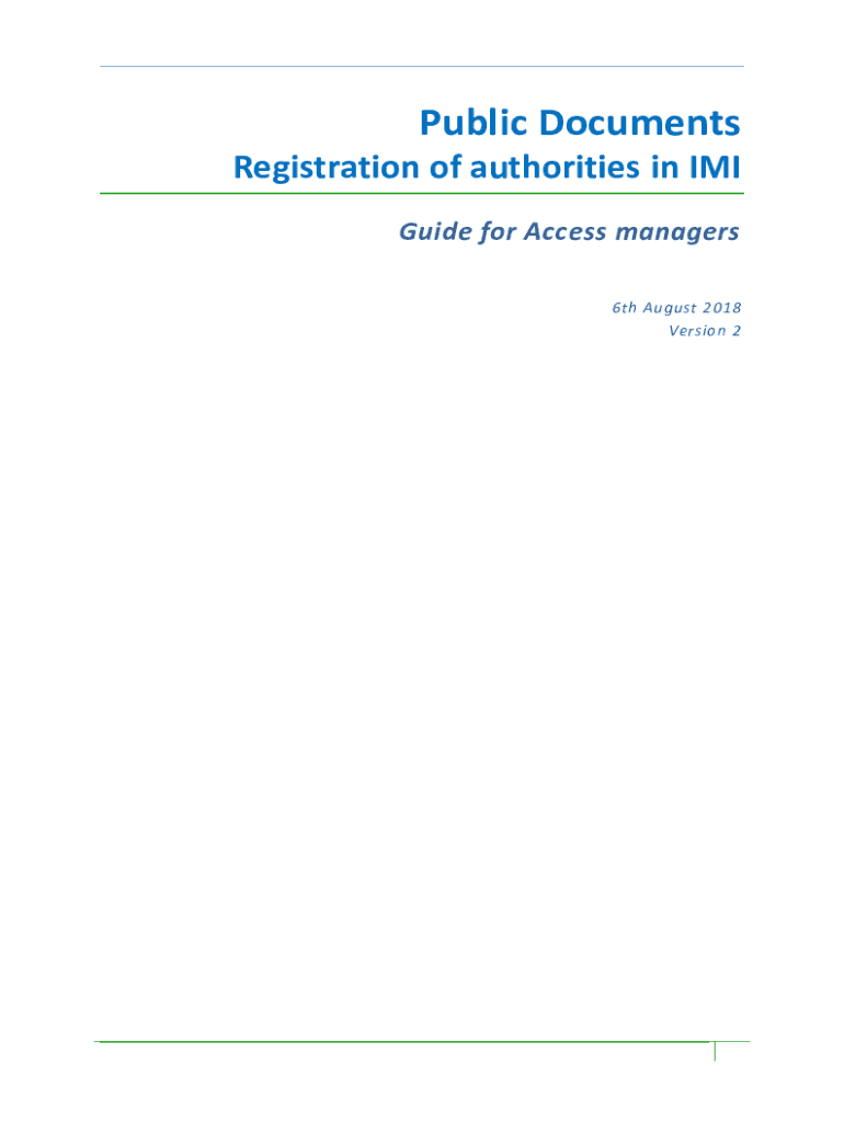 Public Documents Registration of authorities in IMF Guide for Access managers 6th August 2018 Version 2PUBLIC DOCUMENTS REGISTRATION GUIDE Document revisionsDateVersion numberDocument changes29/06/20180.1First