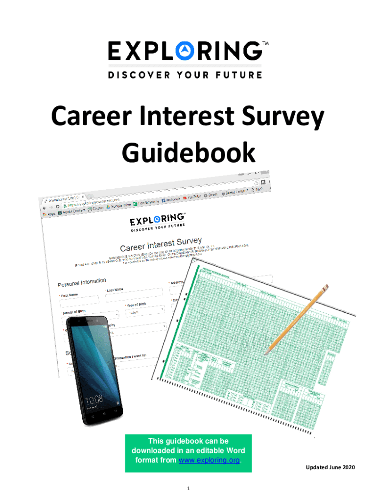 Career Interest Survey Guidebooks guidebook can be downloaded in an editable Word format from www.exploring.org.1Updated June 2020Career Interest Survey Guidebook TABLE OF CONTENTS SECTION 1. Preparing
