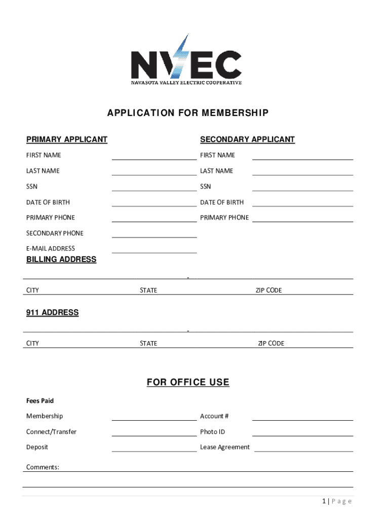 APPLICATION FOR MEMBERSHIP PRIMARY APPLICANTSECONDARY APPLICANTFIRST NAMEFIRST NAMELESS NAMESSNSSNDATE OF BIRTHDATE OF BIRTHPRIMARY PREPRIMARY POSTSECONDARY PHONE EMAIL ADDRESSBILLING ADDRESSCITYSTATEZIP
