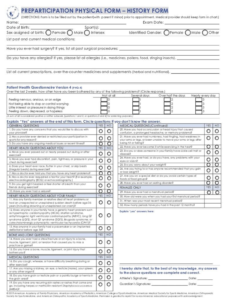 Get the free Preparticipation Physical Form - History and Examination Form