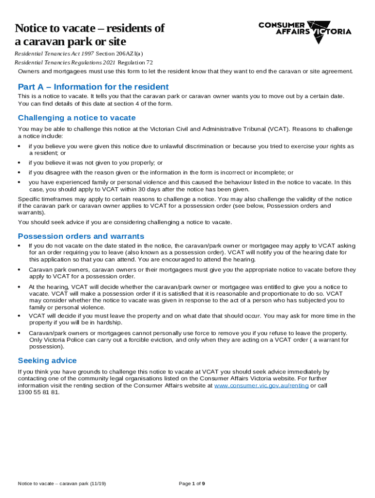 What is Notice to vacate to resident/s of a caravan parkResidential Tenancies (Caravan ... - Victorian GovernmentResidential Tenancies (Caravan ... - Victorian GovernmentHow to Write a Notice to Vacate Letter (Template) Form?