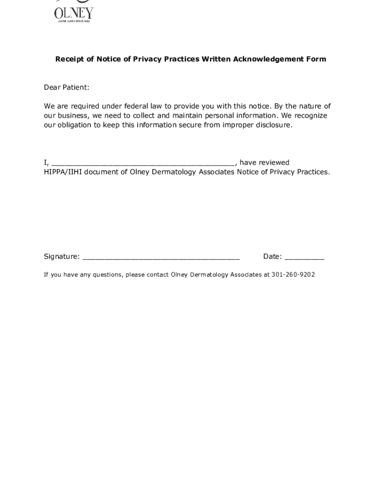 Get the free PDF Receipt of Notice of Privacy Practices Written Acknowledgement Form