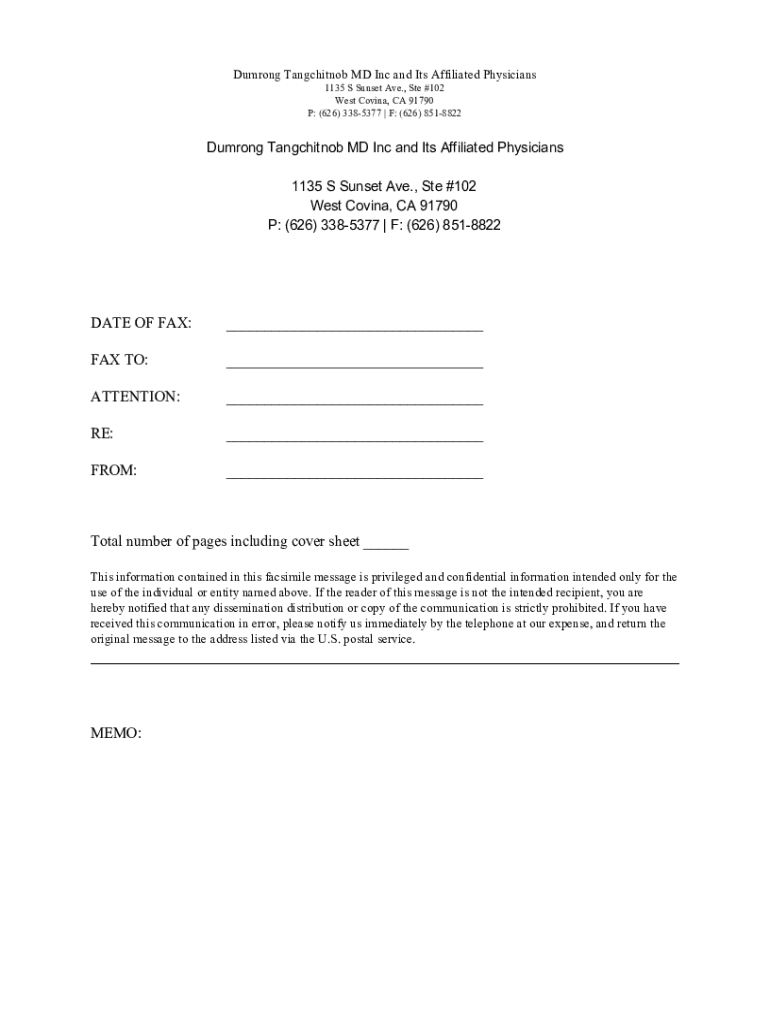 During Tangchitnob MD Inc and Its Affiliated Physicians 1135 S Sunset Ave., Ste #102 West Covina, CA 91790 P: (626) 3385377 F: (626) 8518822Dumrong Tangchitnob MD Inc and Its Affiliated Physicians