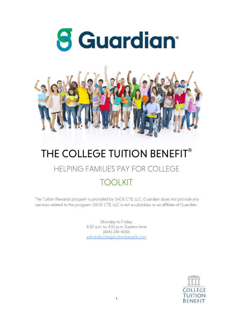 THE COLLEGE TUITION BENEFIT HELPING FAMILIES PAY FOR COLLEGETOOLKIT The Tuition Rewards program is provided by SAGE CTB, LLC. Guardian does not provide any services related to this program. SAGE CTB,