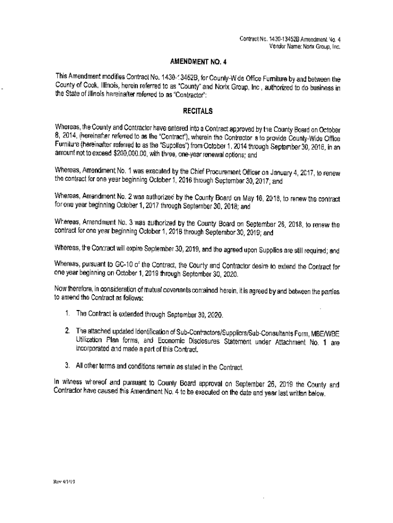 Contract No. 143013452B Amendment No. 4 Vendor Name: Nor ix Group, Inc, AMENDMENT NO. 4This Amendment modifies Contract No. 143013452B, for Countywide Office Furniture by and between the County of