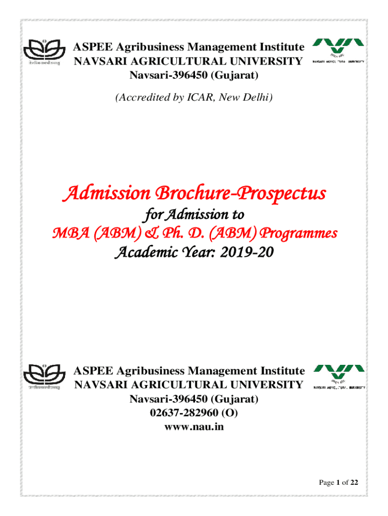 ASPEN Agribusiness Management Institute NAVAL AGRICULTURAL UNIVERSITY Navsari396450 (Gujarat) (Accredited by CAR, New Delhi)Admission BrochureProspectus for Admission tomb (ABM) & Ph.D. (ABM) Programs