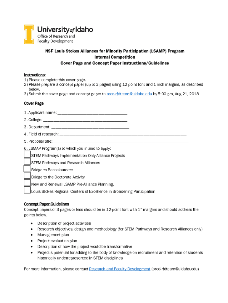 NSF Louis Stokes Alliances for Minority Participation (LAMP) Program Internal Competition Cover Page and Concept Paper Instructions/Guidelines Instructions: 1) Please complete this cover page. 2)
