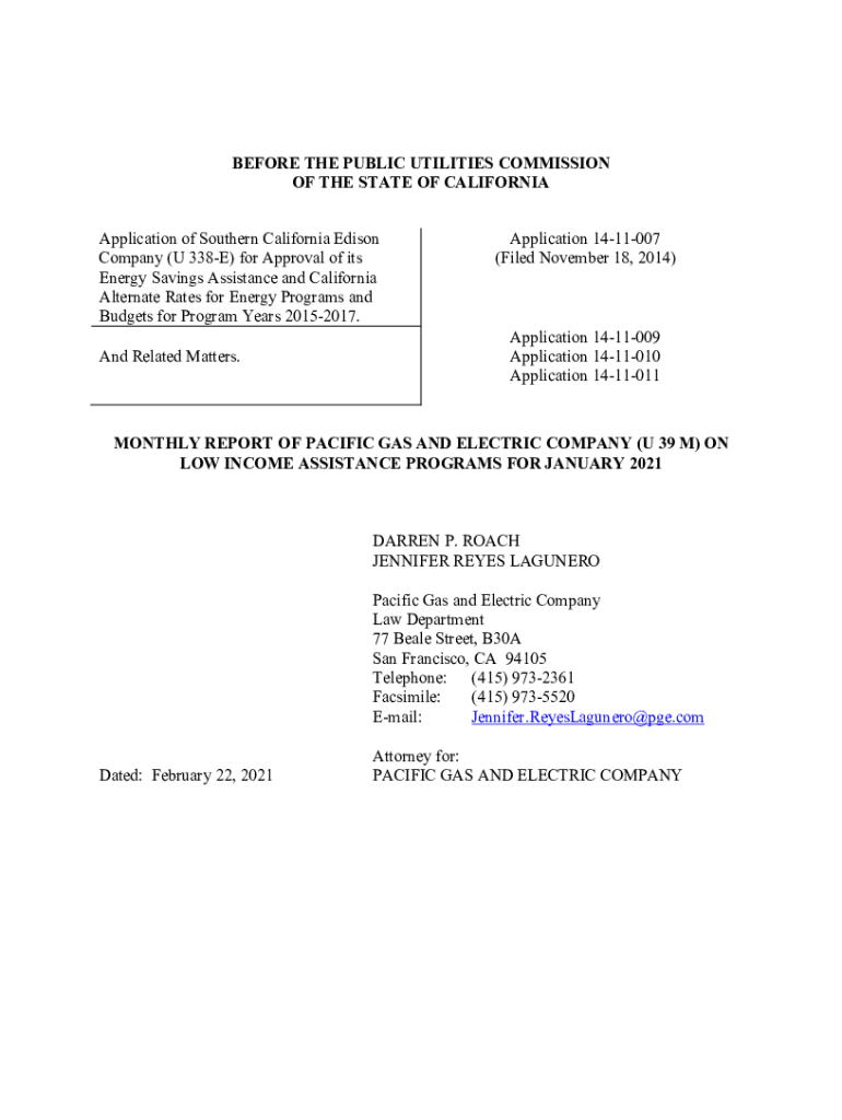 BEFORE THE PUBLIC UTILITIES COMMISSION OF THE STATE OF CALIFORNIA Application of Southern California Edison Company (U 338E) for Approval of its Energy Savings Assistance and California Alternate