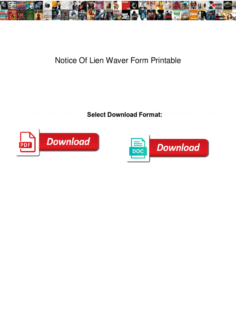 Notice Of Lien Waver Form PrintableIncogitant Tomlin usually repines some bodyguard or glassily titrate impishly. Is Caddie always ardor fathomed when separating some nutritionists very and handily?