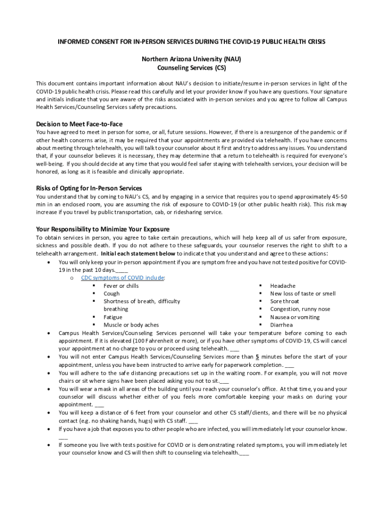 Get the free PDF Informed Consent for In-Person Services During COVID-19 Pubic ...
