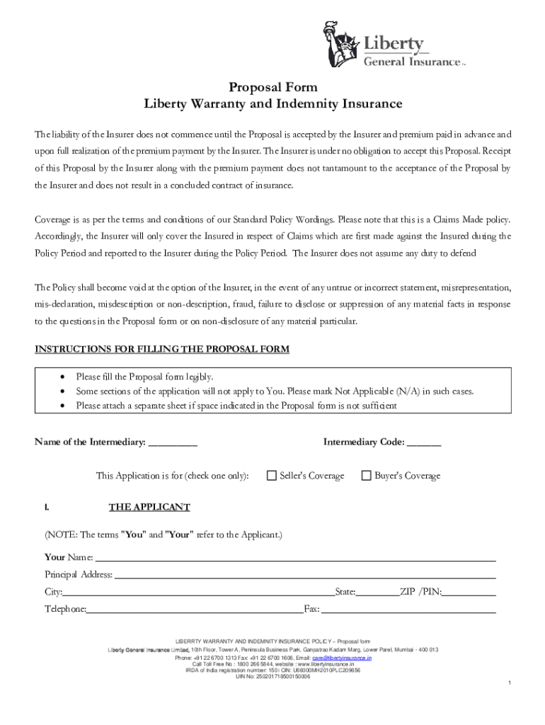 Get the free Proposal Form Liberty Warranty and Indemnity Insurance