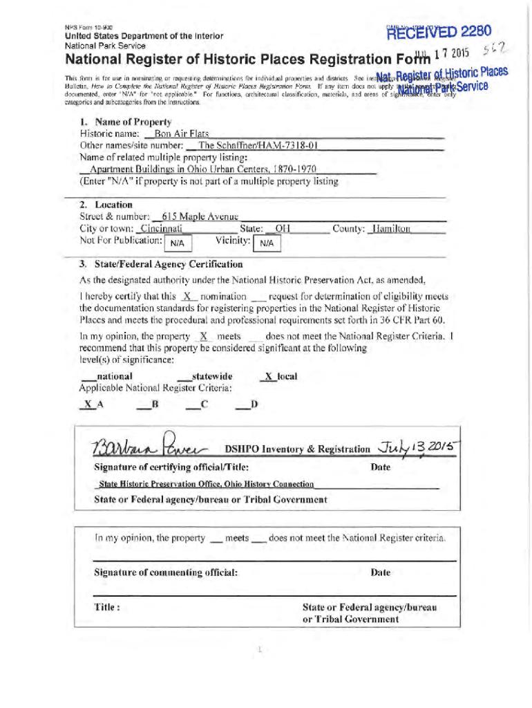 9A4!MAJ MC:VCI V t:.UPS Form 10900United States Department of the Interior National Park Service2280National Register of Historic Places Registration Fowl 1 7 2015:l “)) Historic, Places tftliwiN,vuttP11fL1i.