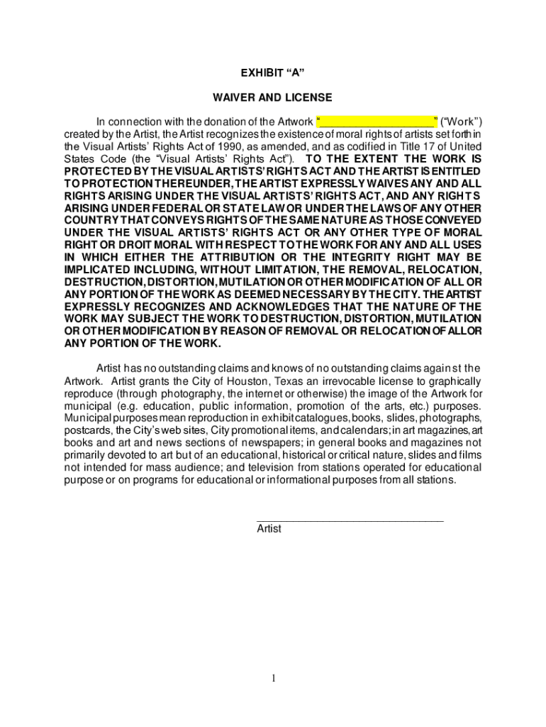 Get the free www.houstontx.govSample-VARA-WaiverWAIVER AND LICENSE - Houston