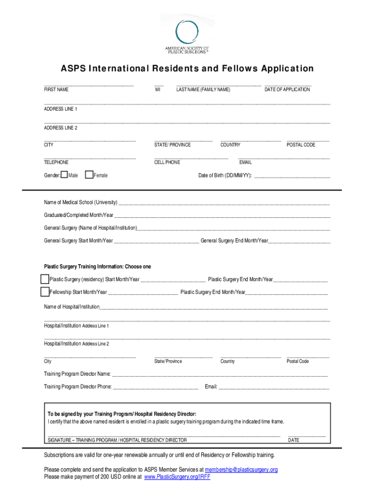 Get the free PDF ASPS-International-Trainee-Application.pdf - American Society of ...