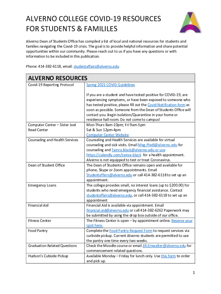 ALBERTO COLLEGE COVID-19 RESOURCES FOR STUDENTS & FAMILIES Alberto Dean of Students Office has compiled a list of local and national resources for students and families navigating the COVID-19 crisis.