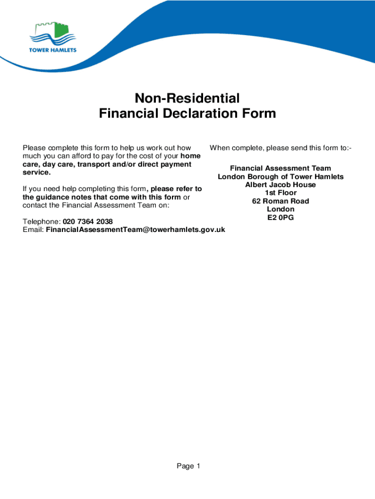 Nonresidential Financial Declaration Form Please complete this form to help us work out how much you can afford to pay for the cost of your home care, day care, transport and/or direct payment service.