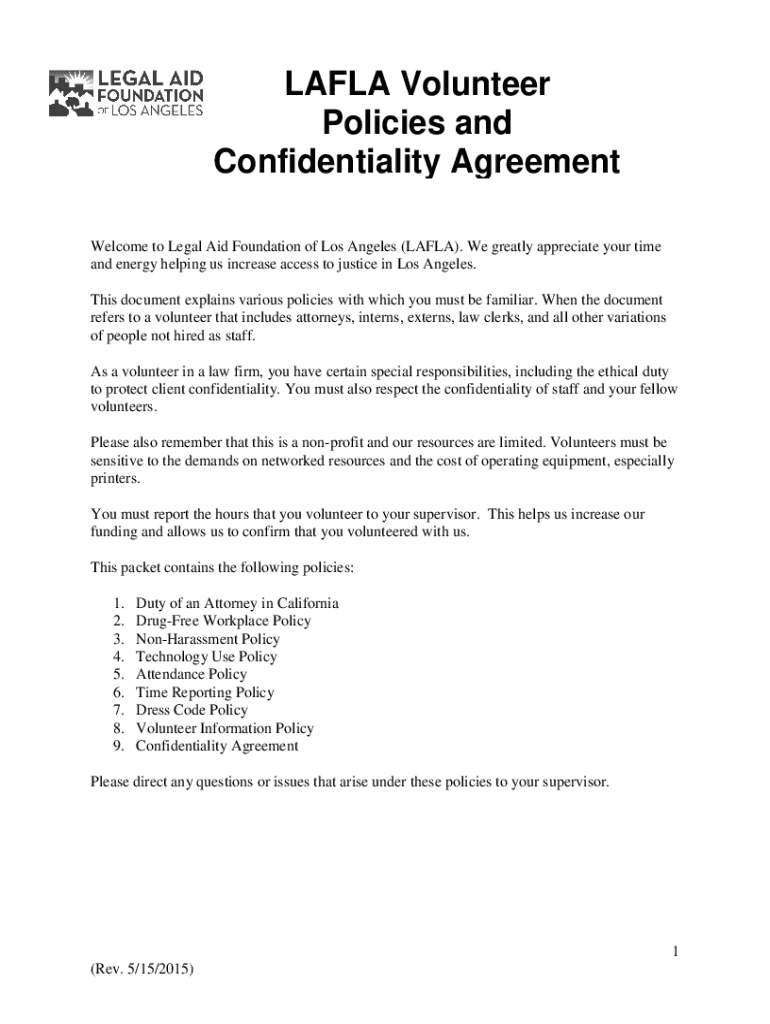LAYLA Volunteer Policies and Confidentiality Agreement Welcome to Legal Aid Foundation of Los Angeles (LAYLA). We greatly appreciate your time and energy helping us increase access to justice in Los