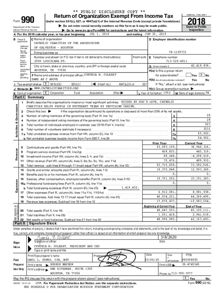 ** PUBLIC DISCLOSURE COPY ** Form990Return of Organization Exempt From Income Tax OMB No. 15450047 Do not enter social security numbers on this form as it may be made public. Open to Public Inspection2018Under
