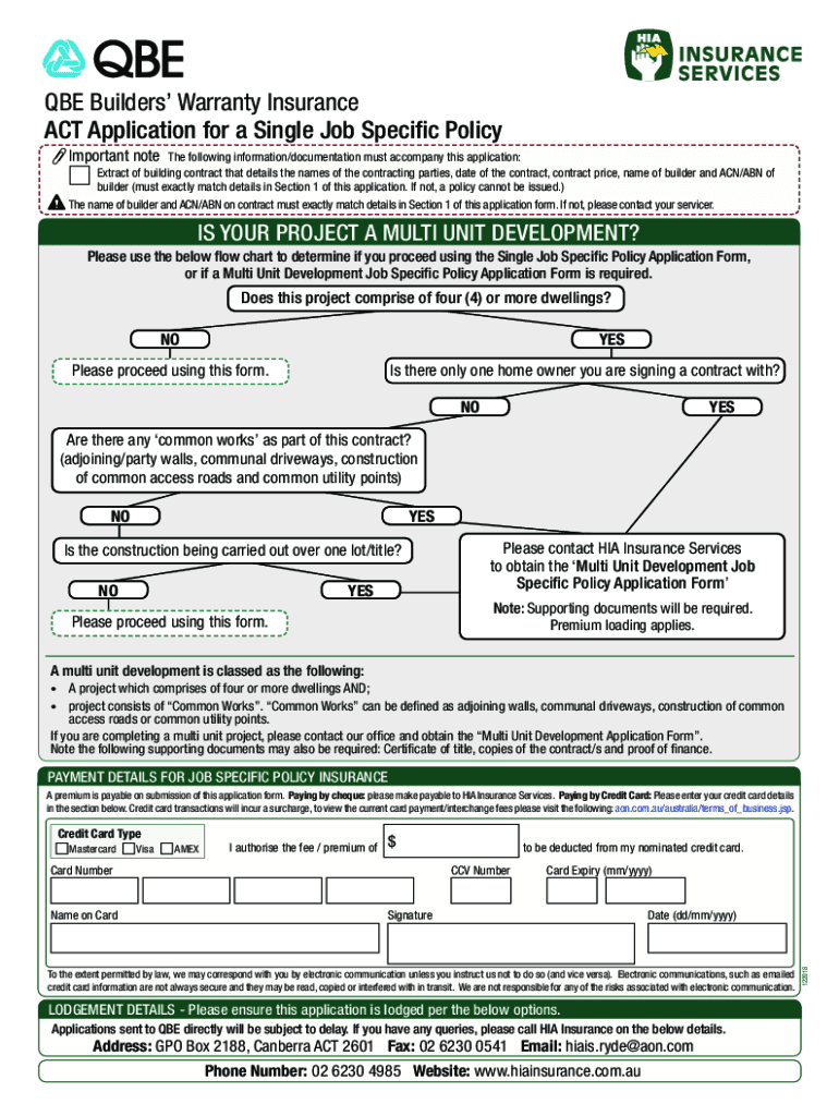 QBE Builders Warranty Insurance ACT Application for a Single Job Specific Policy Important Goethe following information/documentation must accompany this application: Extract of building contract