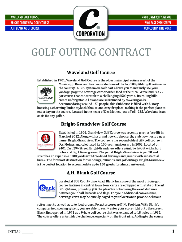 GOLF OUTING CONTRACTWaveland Golf CourseEstablished in 1901, Waveband Golf Course is the oldest municipal course west of the Mississippi River and has been rated one of the top 100 public golf courses