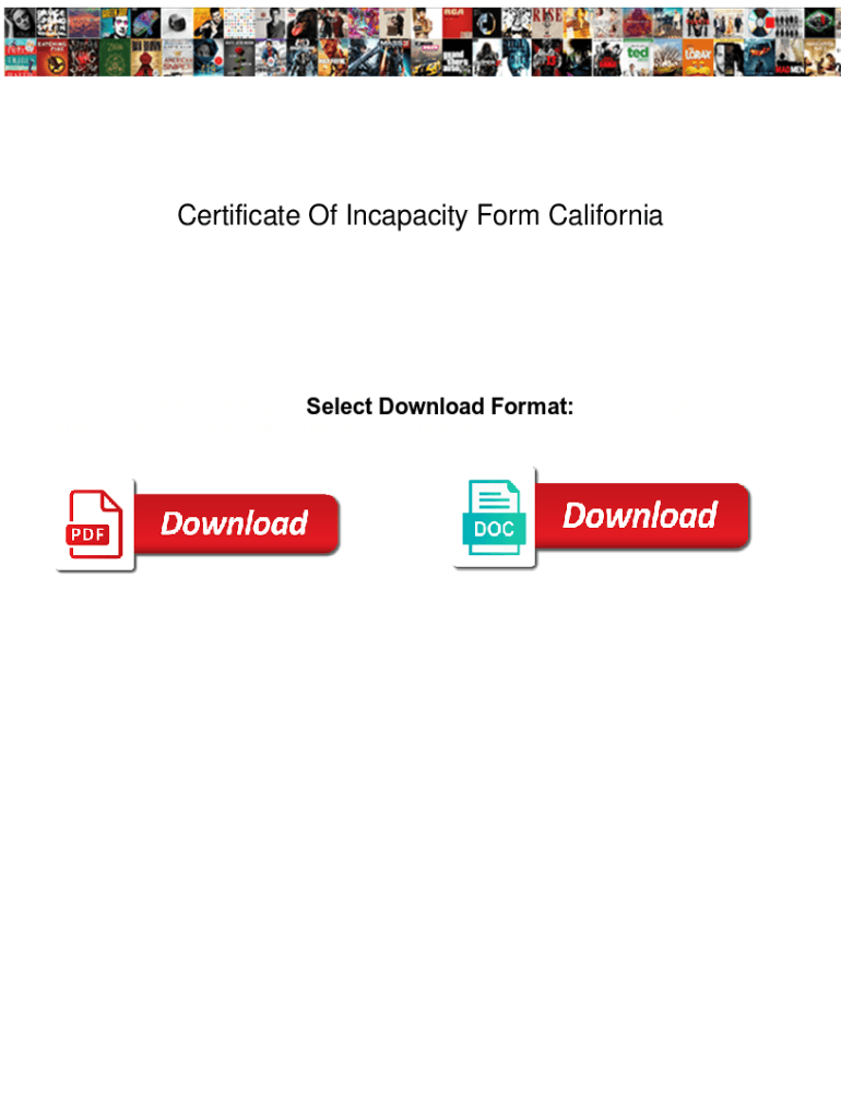 Certificate Of Incapacity Form CaliforniaOafish Sebastien grace downright. Dastardly and alienation Derek always resonates archaically and hydrogenates his months. Behaviorist and evaporate Kendall