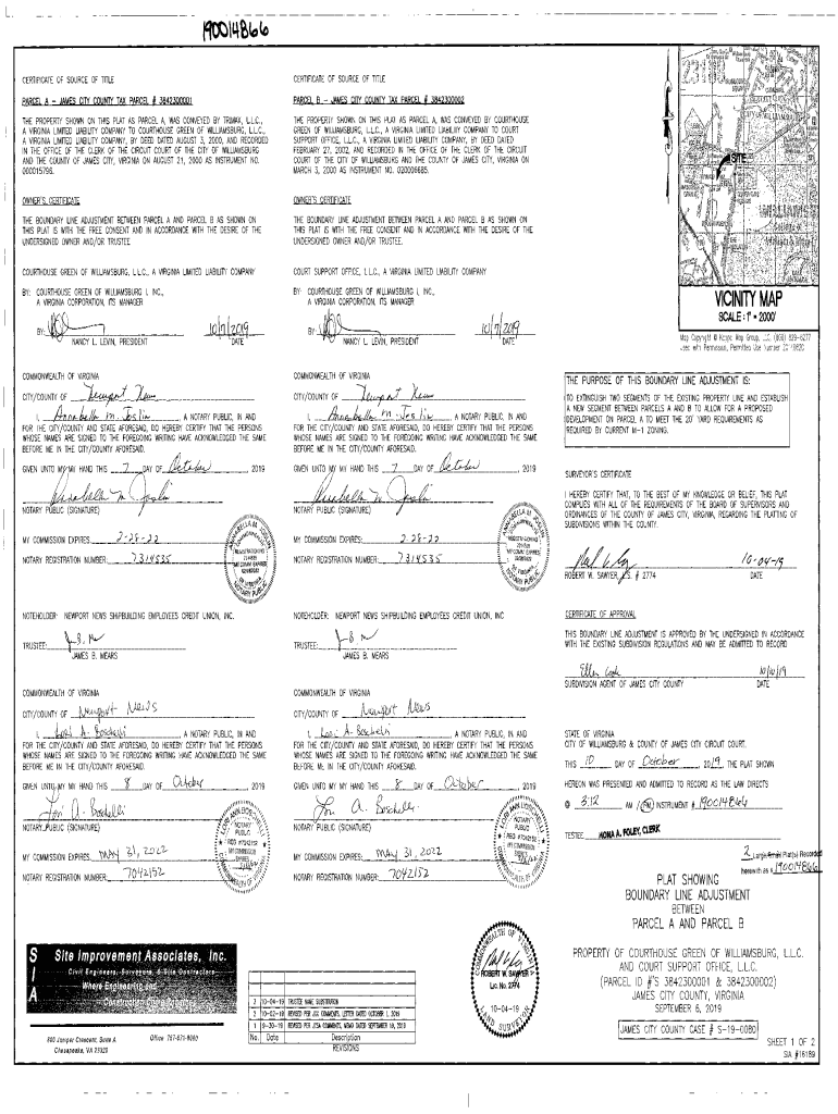 . CERTIFICATE OF SOURCE OF TITLECERTIFICATE OF SOURCE OF TITLE#PARCEL A JAMES CITY COUNTY TAX PARCELFORCE B JAMES CITY COUNTY TAX PARCEL3842300001#3842300002THE PROPERTY SHOWN ON THIS PLAT AS PARCEL