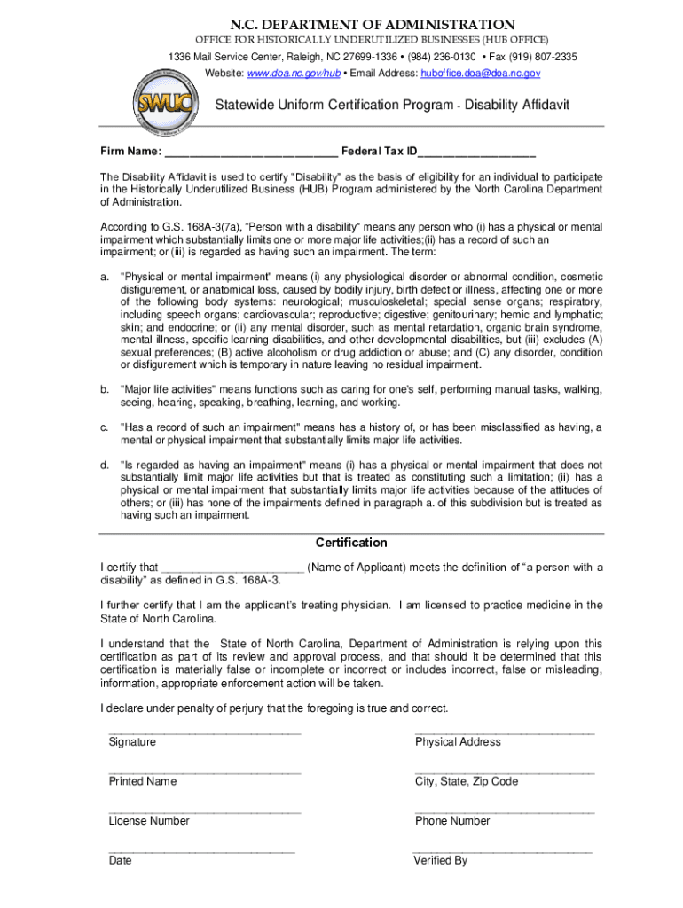 Get the free NC DOA : The NC Office for Historically Underutilized ...