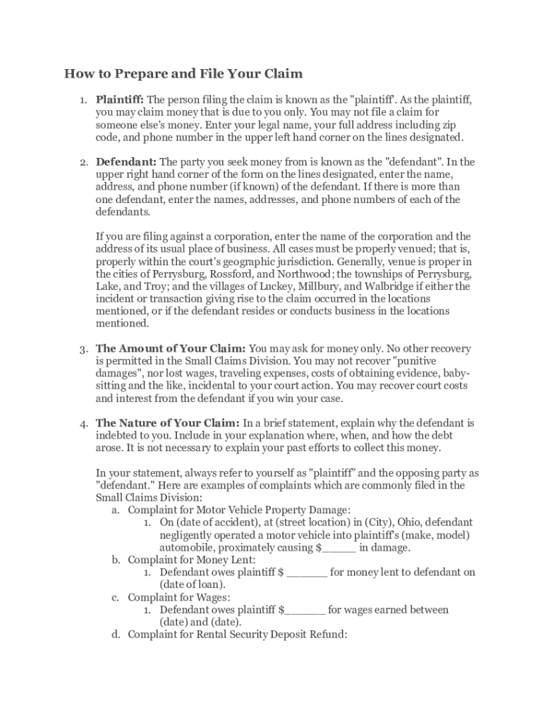 How to Prepare and File Your Claim 1. Plaintiff: The person filing the claim is known as the plaintiff '. As the plaintiff, you may claim money that is due to you only. You may not file a claim for